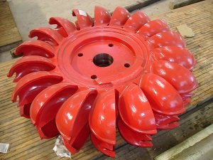 Impulse turbine is applicable for different heads of 100-500meters.The feature is that it works by impulsing the runner to rotate with kinetic energy of water folw, and the jet center of nozzle and the runner are in the same plane.This kind of turbine shall be of compack conformation,reliable operation and convenient operation and appropriate to the power station of large load variation.